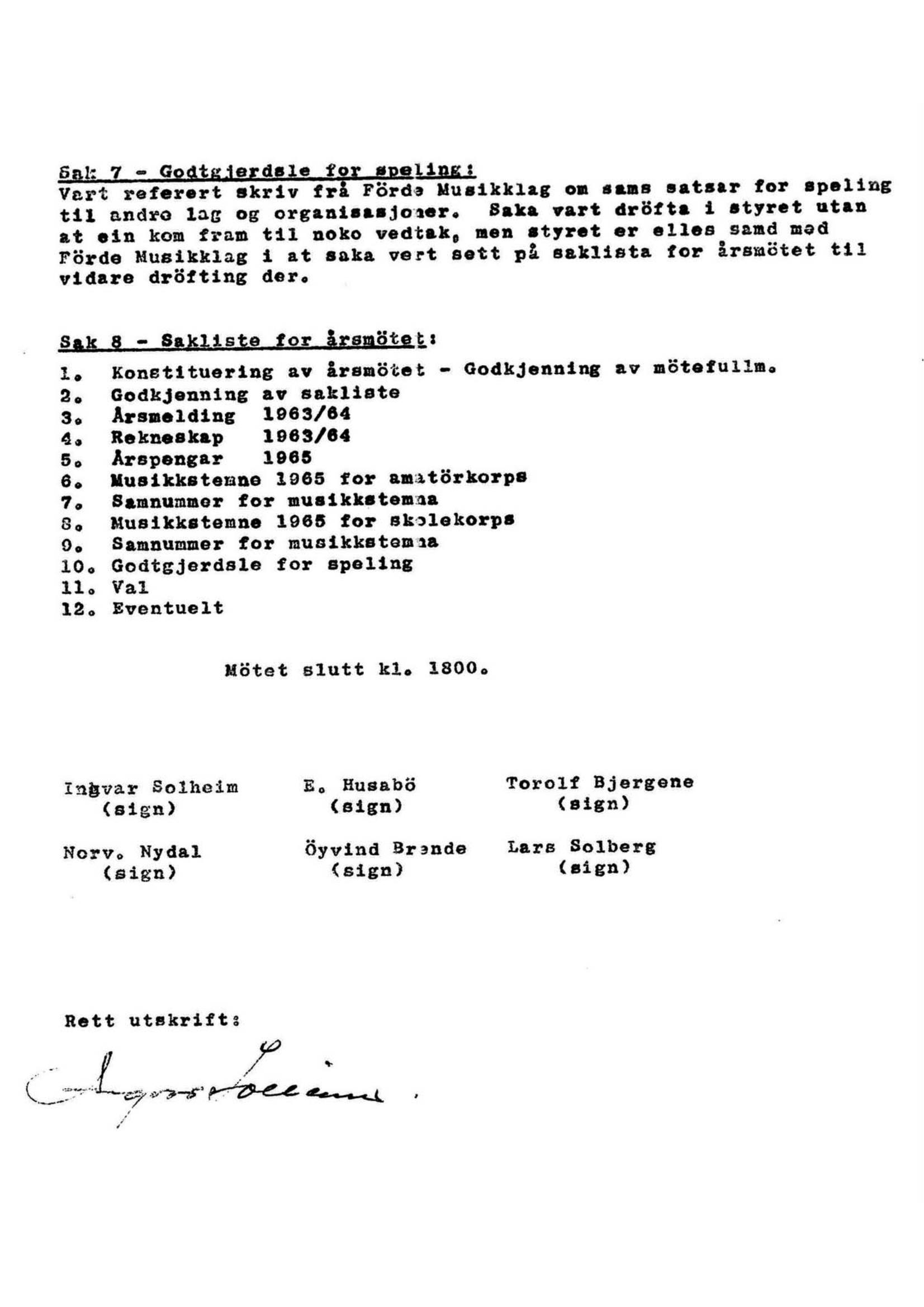Ingvar Solheim: 1964 Årsmøte dokumenter