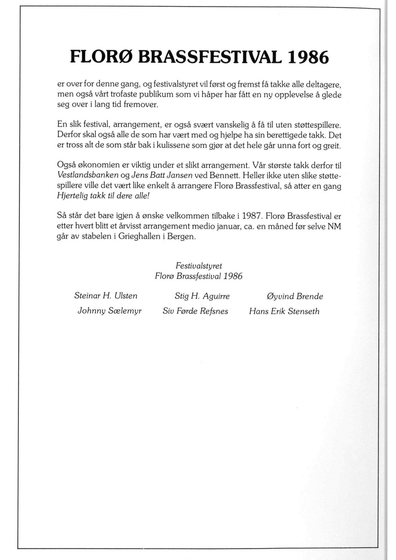 Ingvar Solheim: 1982 Florø Brassfestival