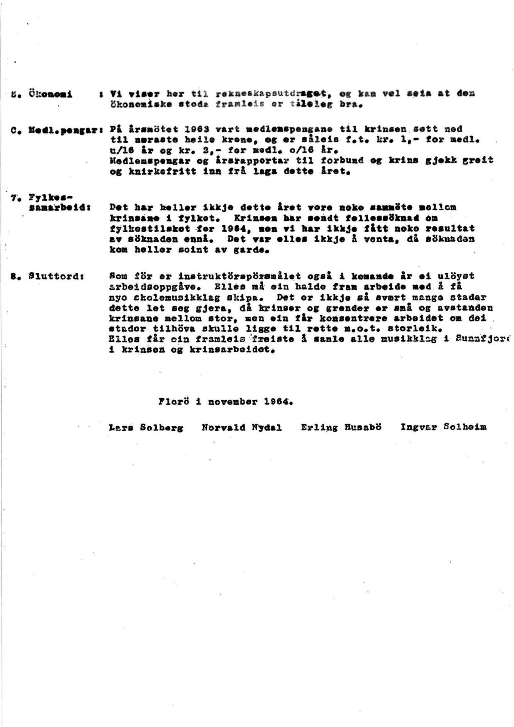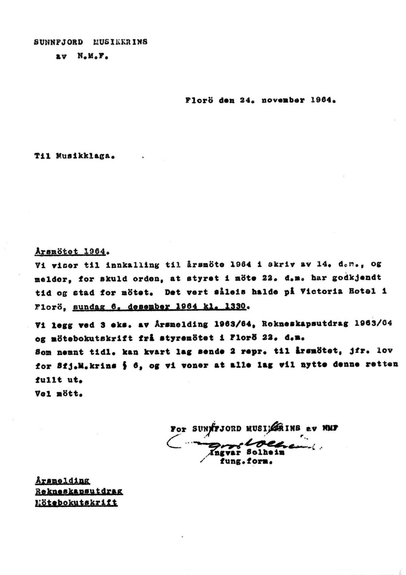Ingvar Solheim: 1964 Årsmøte dokumenter