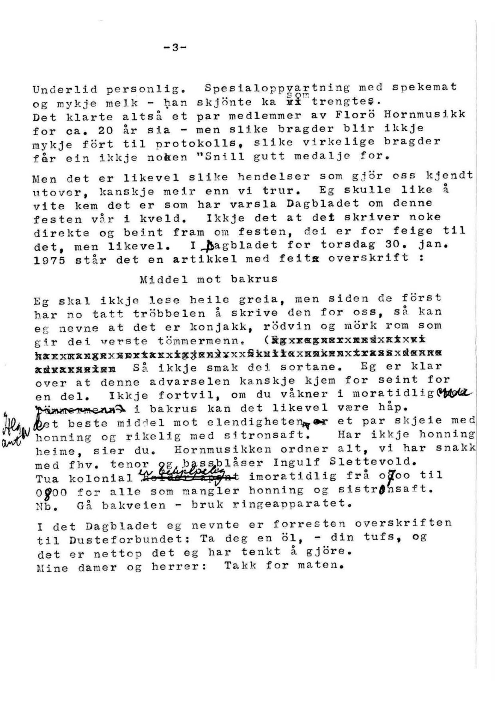 Ingvar Solheim: 1975- Års fest tale
