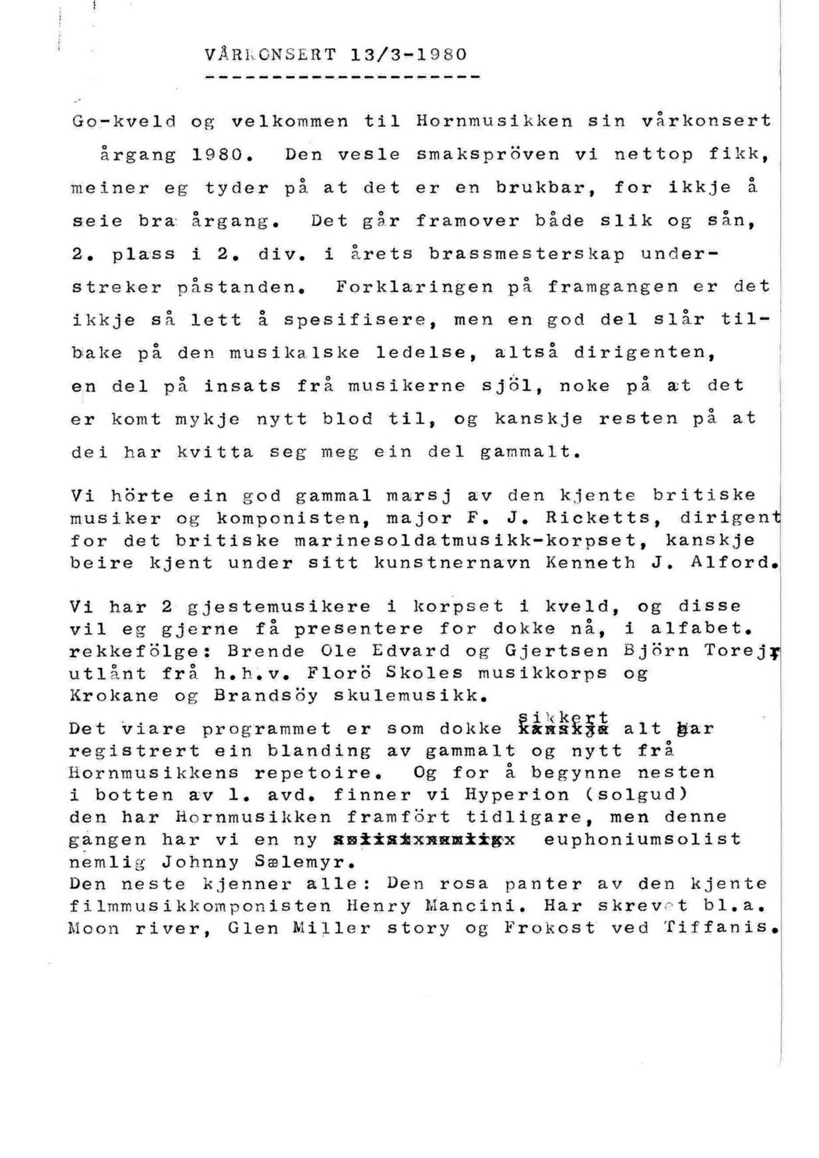 Ingvar Solheim: 1980 vårkonsert